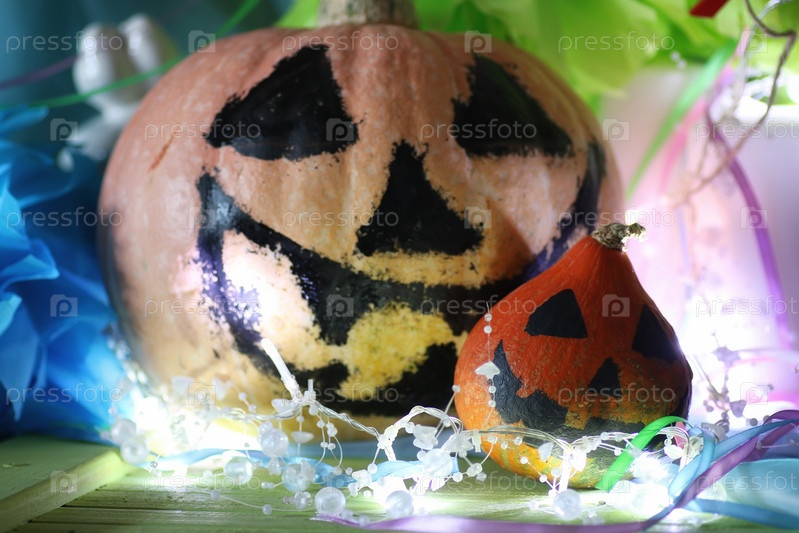 Лицо с тыквенной головой и легкая гирлянда
