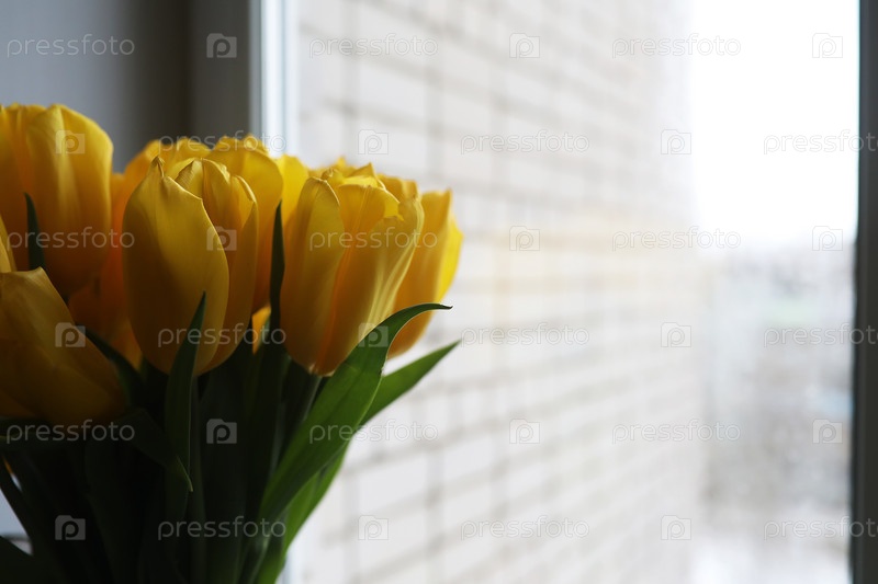 Букет свежих желтых тюльпанов в вазе
