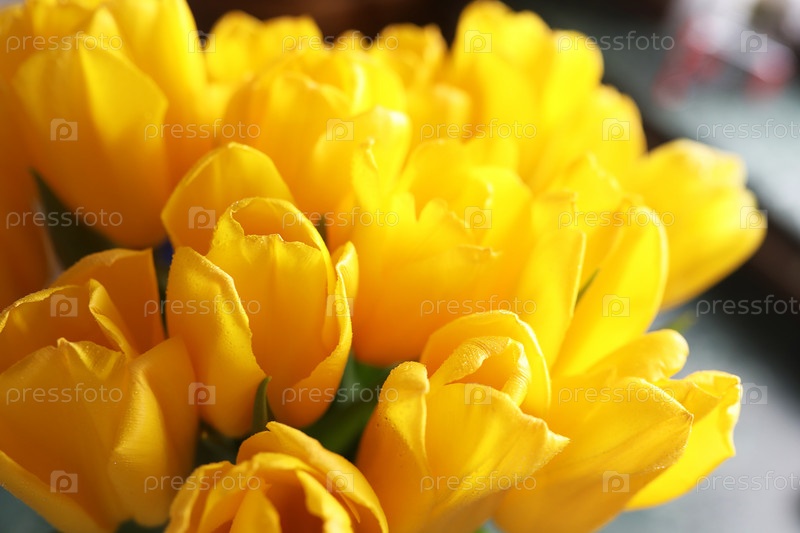 Букет свежих желтых тюльпанов в вазе