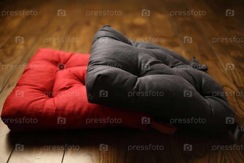 Подушки на деревянном паркетном полу