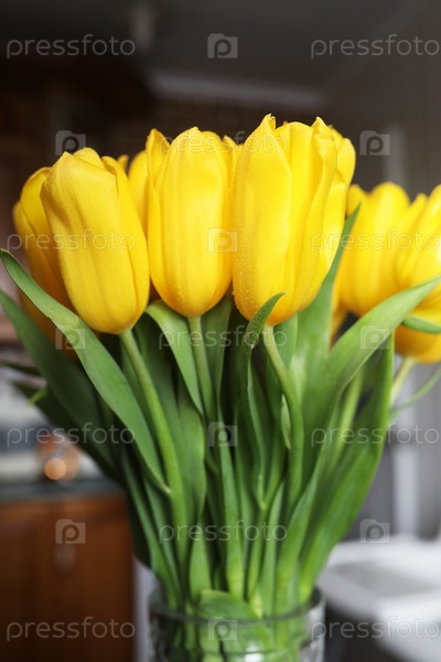 Букет свежих желтых тюльпанов в вазе