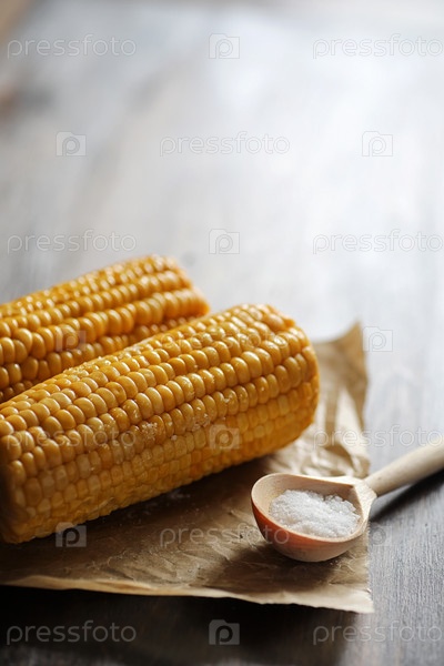 Приготовленный кукурузный комнат солью на дровах