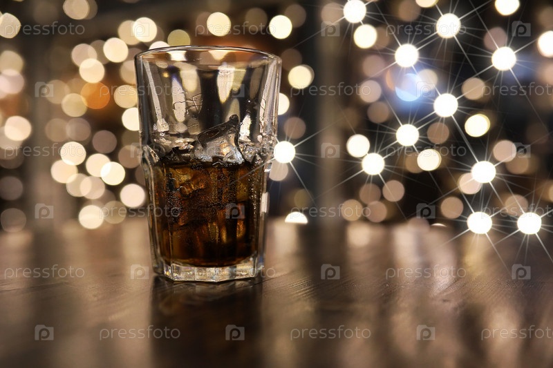 Стакан холодного алкогольного напитка с льдом на столе