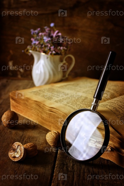 Увеличительное стекло и старая книга