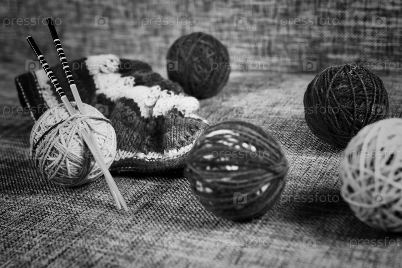Вышивка шерстяных шаров и вязаные иглы