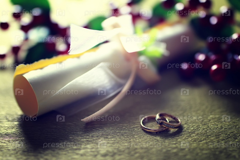 Тонированное обручальное кольцо на фоне приглашения