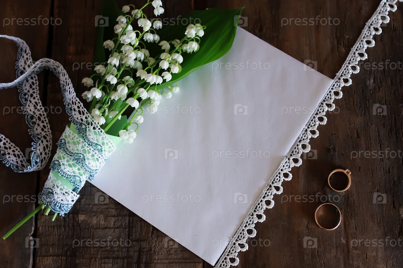 Свадебный букет лилий долины и кольца