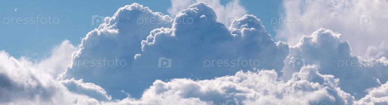Панорама неба с большими белыми облаками