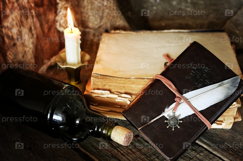Дневник и перо с бутылкой рома