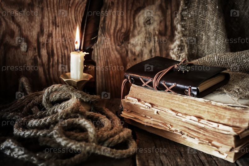 Пиратский объект на деревянном столе