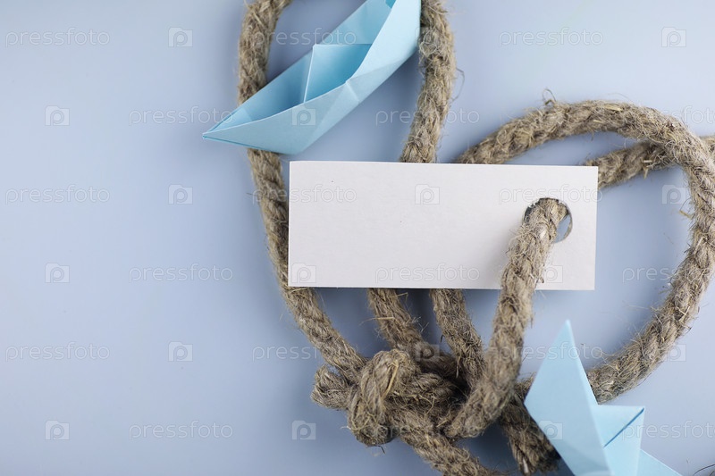 Наклейка с толстой сплетённой веревкой и оригами на корабельной бумаге