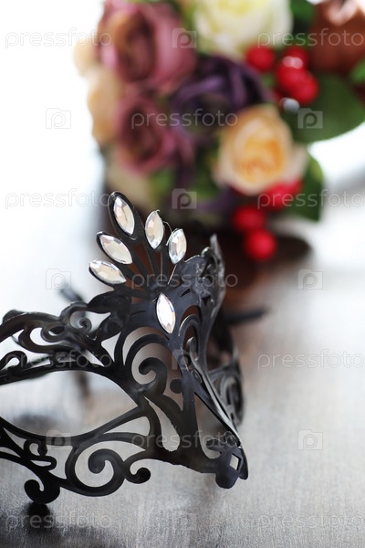 Черная маска на деревянном фоне