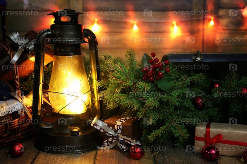 Новогодняя композиция ветвей рождественских деревьев, украшенных с