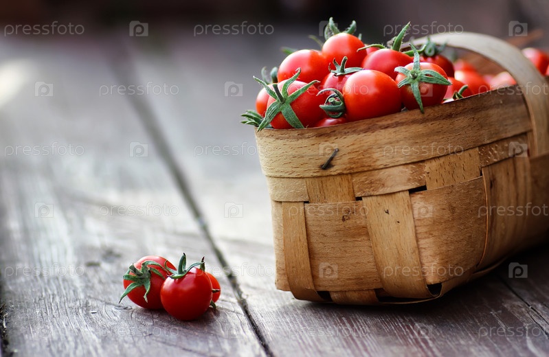 Корзина урожая свежих томатов