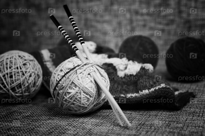 Вышивка шерстяных шаров и вязаные иглы