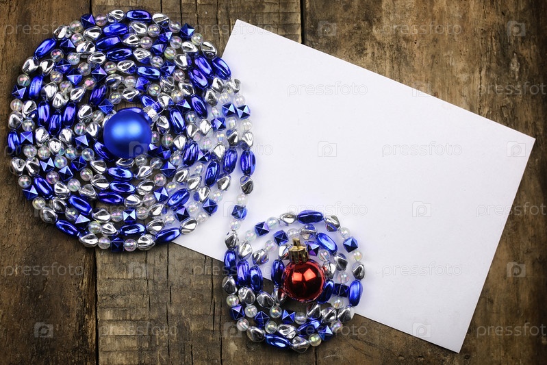 Новогодняя композиция с гирляндами и шариками на деревянном столе