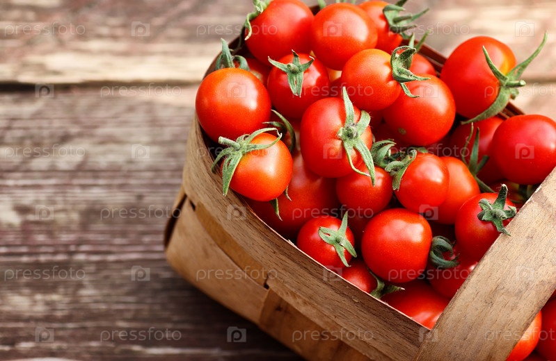 Корзина урожая свежих томатов