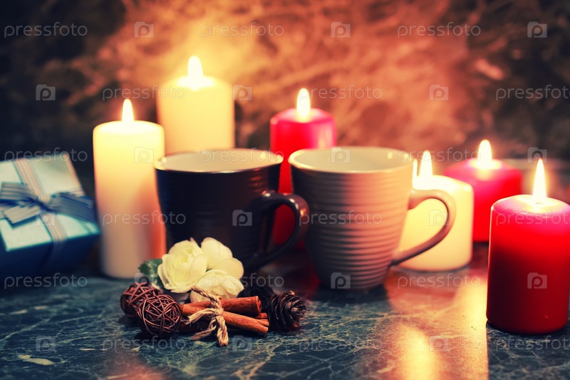 Ночной стол с кружкой и свечой