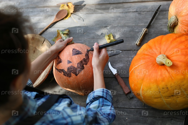 Вырезать тыквы на Хэллоуин