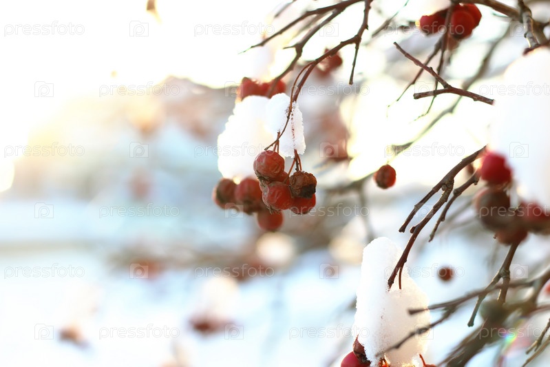 Ветка растения, покрытая снегом зимой макро