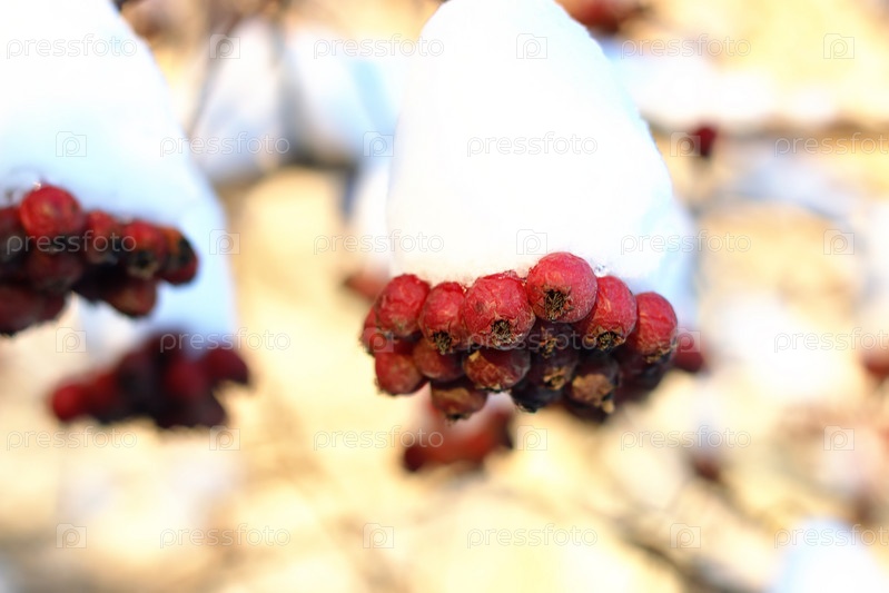 Ветка растения, покрытая снегом зимой макро