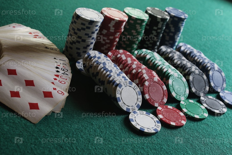 Покерные фишки и карты на ткани