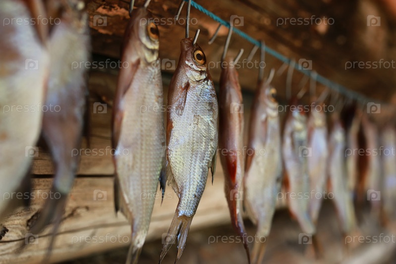 Рыба, высушивающаяся на веревке