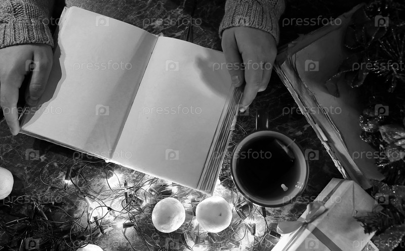 Монохромная фотография мужчины с пустой книгой в руках для N