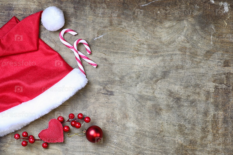 Красная шляпа Санты на текстурированном деревянном фоне