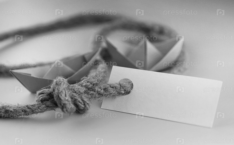 Монохромный фотонаклейка с толстой сплетённой веревкой и корабельной бумагой