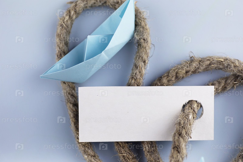Наклейка с толстой сплетённой веревкой и оригами на корабельной бумаге