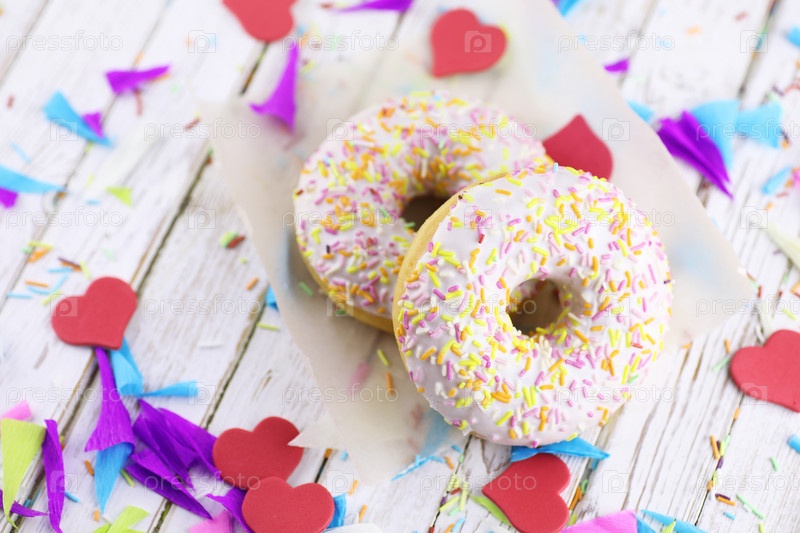 Донат на белом деревянном фоне