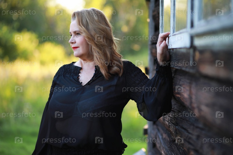 Пожилая женщина на крыльце дома