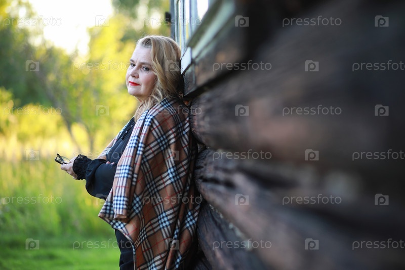 Пожилая женщина на крыльце дома