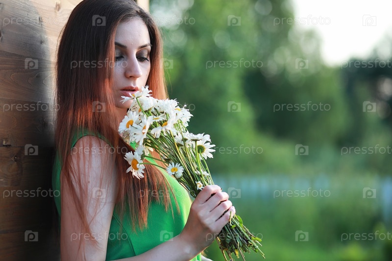 Красивая девушка с рыжими волосами и букетом