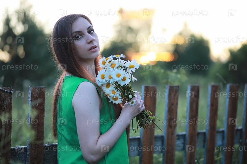 Красивая девушка с рыжими волосами и букетом