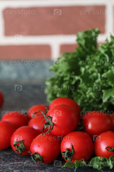 Свежие яркие и сочные помидоры на кухне