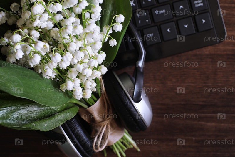 Букет лилий долины на столе