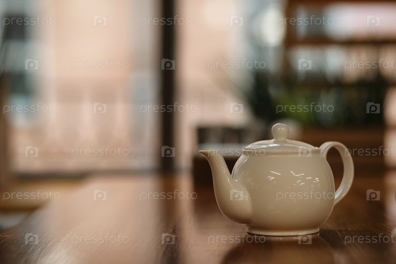 Кетл с напитком и десертом в уличном кафе.Чай в кете