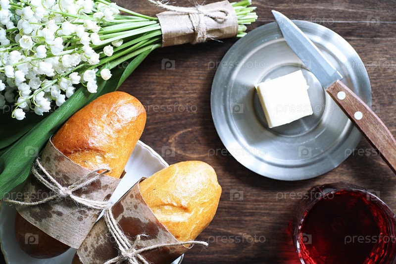 Свежевыпеченный французский багет на деревянном столе