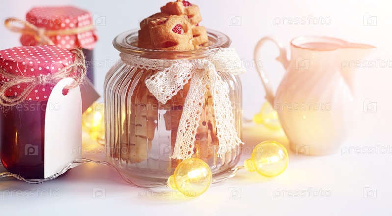 Чай с выпечкой на завтрак. сладости и печенье с орехами f