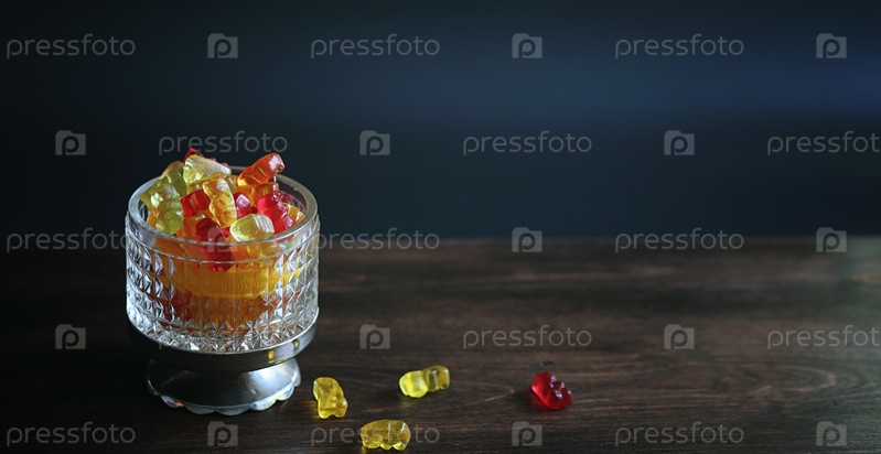 Мармелад в вазе на столе, сладости в миске на черном ба