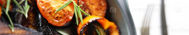 Длинный горизонтальный фон жареных овощей