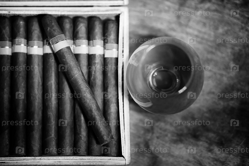 Ретро стильная фотография большой коробки кубинских сигар на деревянном столе