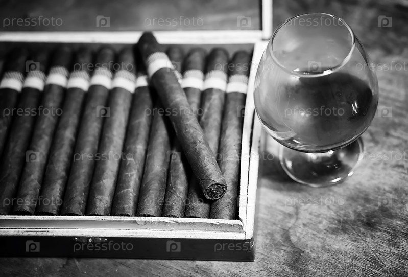 Ретро стильная фотография большой коробки кубинских сигар на деревянном столе