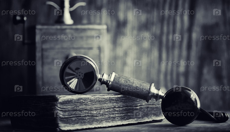 Старый телефон и ретро-книга на столе
