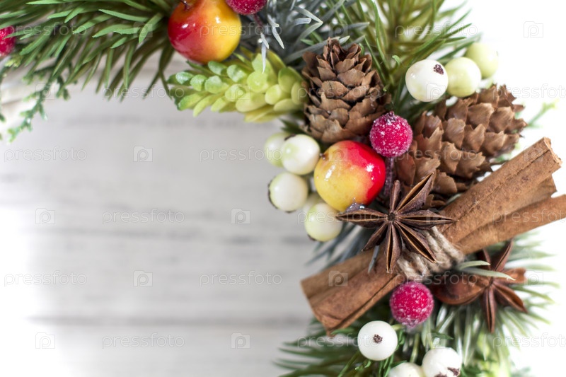 Рождественский венок на деревянном фоне