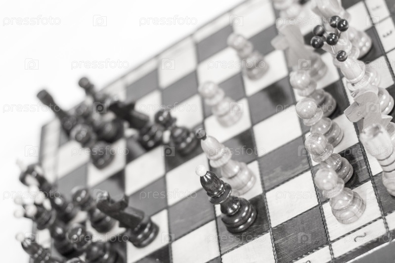 Шахматы.Шахматная доска.Деревянные шахматные фигуры. чёрно-белая фотография