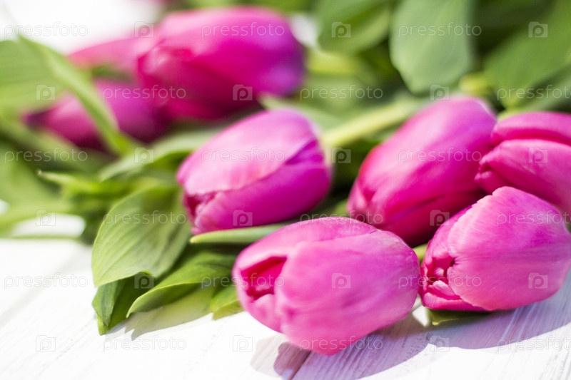 Ярко-розовые тюльпаны на деревянном фоне.Фон для открытки или обоев