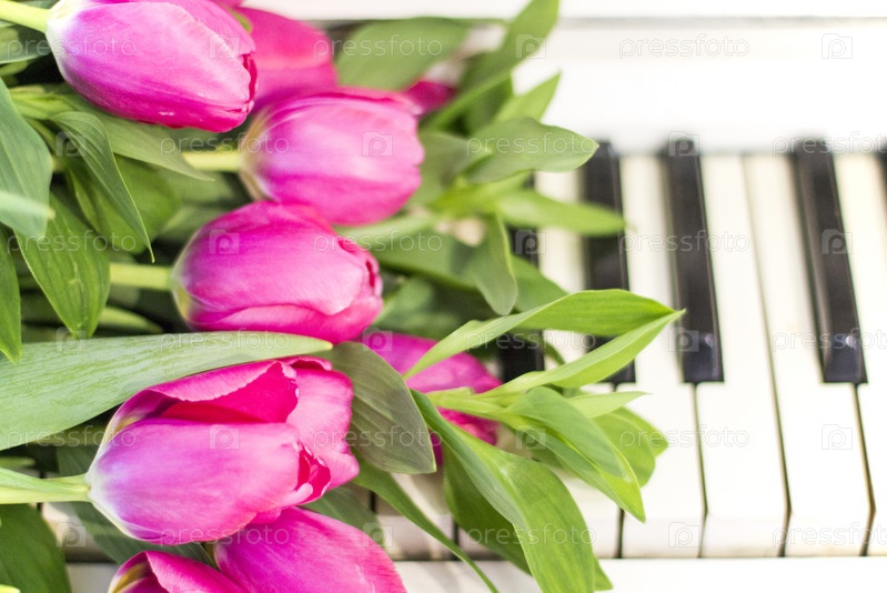 Розовые тюльпаны на белом фортепиано